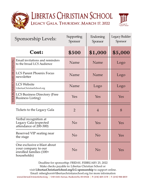 As we work to fund Libertas Christian School this year and years to come, we look to local business support for help.